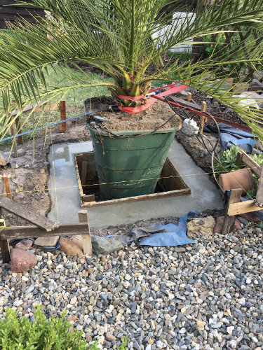 Auf diesen Bildern siehst du die ausgepflanzten Washingtonia filifera. Diese Palmenart ist auch auf Mallorca häufig vertreten. Sie übersteht hierzulande ohne aktiven Schutz auch keinen Winter. Mehr zum Schutz später.