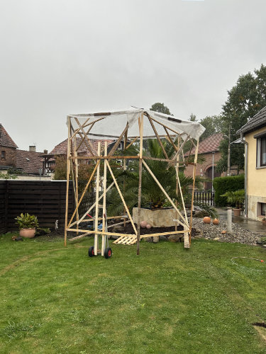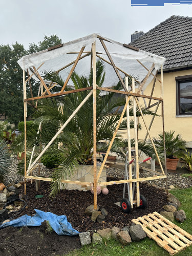 Die Überwinterung ist bei euch zu einem echten Highlight geworden – fast schon ein eigenes Projekt. Mittlerweile habt ihr fünf winterfeste Palmenhäuser in unterschiedlichen Größen gebaut. Kübelpalmen stellt ihr einfach hinein.